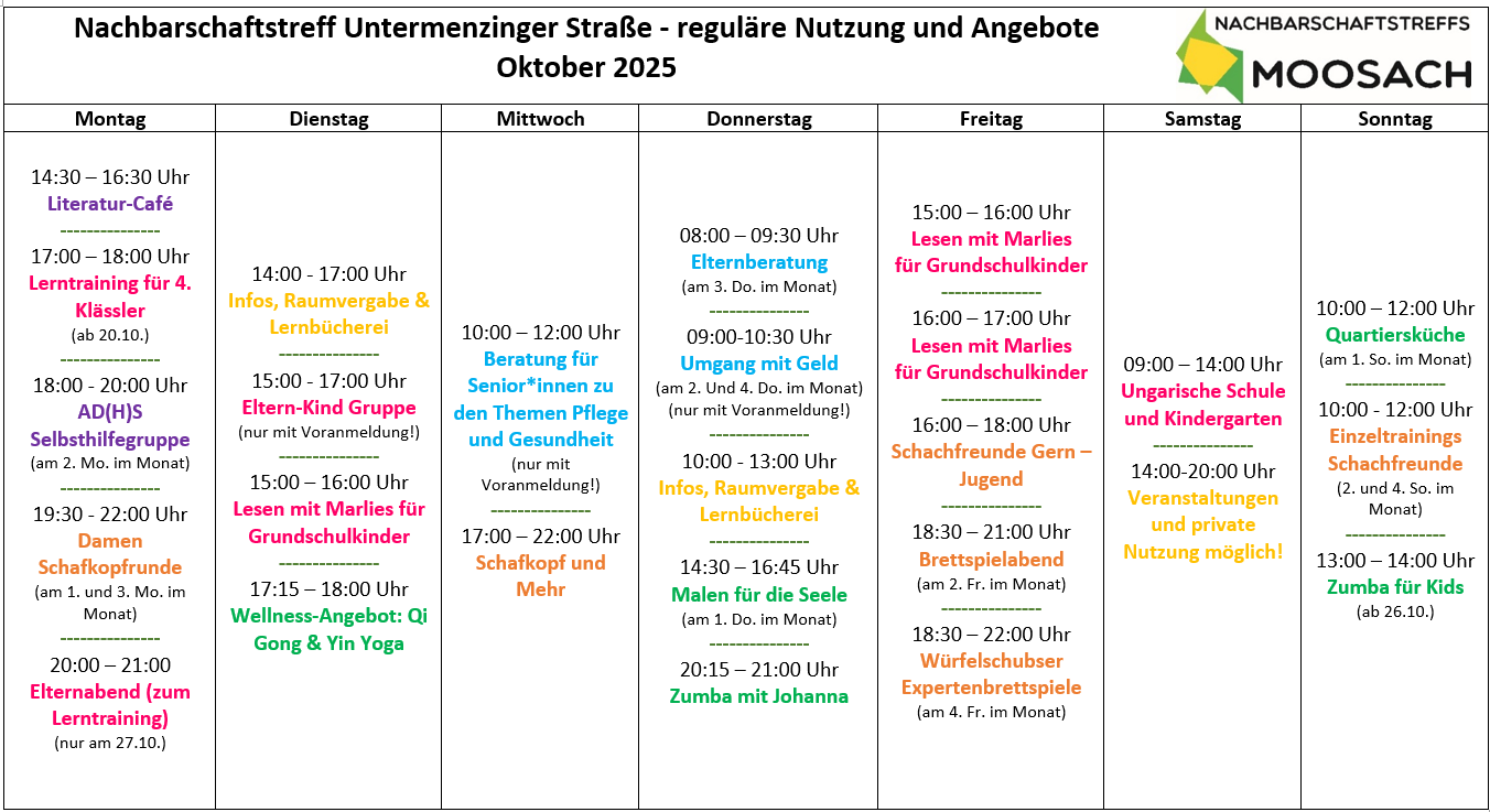 Unsere Gruppen, Angebote und Möglichkeiten zur privaten Raumnutzung für den Oktober 2025: